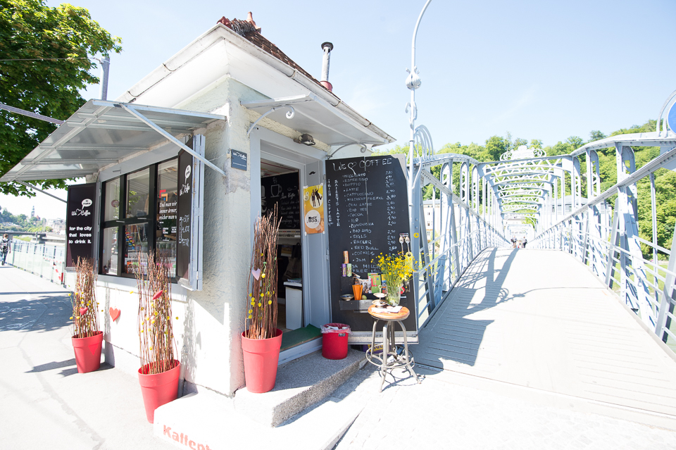 Salzburgs kleinstes Kaffeehaus – das ist We love Coffee am Mozartsteg. Mitten in der Salzburger Altstadt am Ufer der Salzach liegt das ehemalige Mauthäusl. Zurück geht die Geschichte des kleinen Häusls bis in das Jahr 1903. Damals war es der geschäftstüchtige Gastronom Georg Krimmel, der den Bau des Mozartstegs veranlasste, um die Salzburger von der Altstadt hinüber an den Giselakai zu locken, wo sein Café Corso lag. An der Brücke wurde auch ein Mauthäusl aufgestellt, wo man beim Queren seinen Sold leisten musste. Den Sold gibt es heute freilich nicht mehr – aber das Haus steht noch immer. Und genau hier befindet sich We love Coffee.